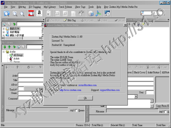 Zortam Mp3 Media Studio是一個MP3音樂文件管理的集成工具。他包括MP3管理、使用CDDB