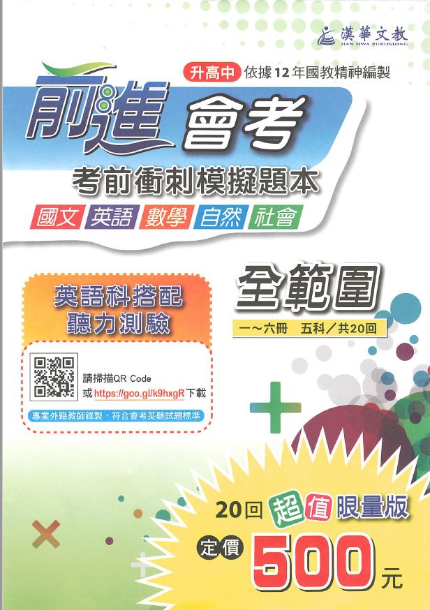 109年 國中會考 前進會考 漢華文教 考前衝刺模擬題本 五科合一 會考題庫