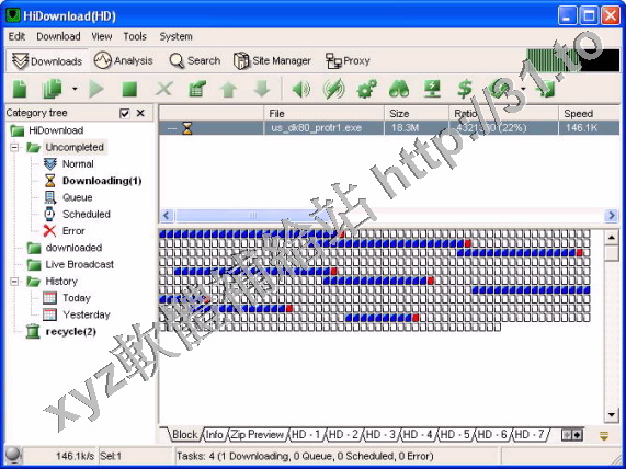 HiDownload(HD) 是一款可以從Web, FTP站台,MMS和RTSP站台下載文件的下載管理工具。它可