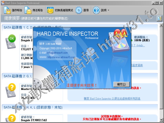 • Hard Drive Inspector Pro v2.98.475 繁體中文正式版(硬碟監控軟體)