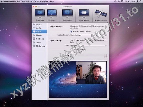 捕獲你的內置場景作為圖片電影。使用任何QuickTime兼容的攝像頭到你的