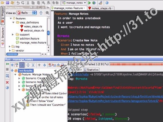 -- RSpec 和 Test::Unit 測試框架支援 - 具有基於 GUI 的測試運行工具。