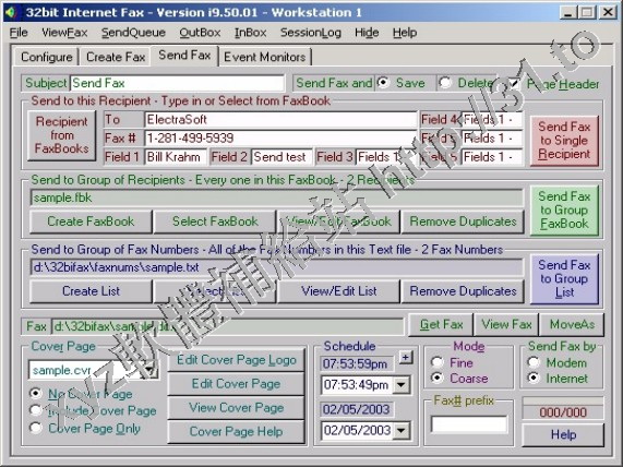 並可以創建定制的封面、定制傳真面的大小、瀏覽傳真、控制 Modem 的聲音、自動定時