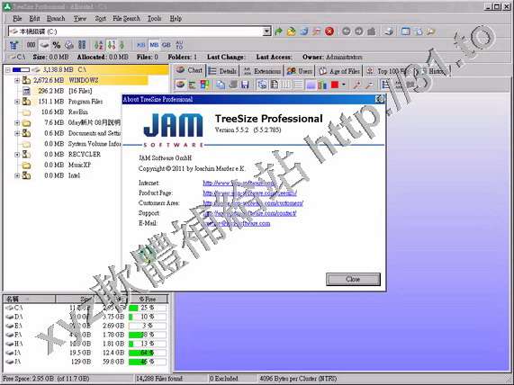 JAM Software TreeSize Professional v5.4.0.676 英文正式版(硬碟空間回收器軟體)